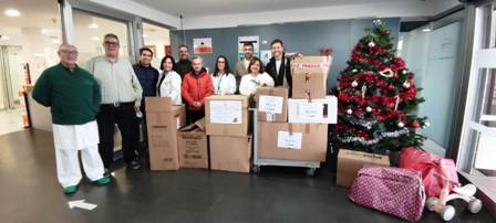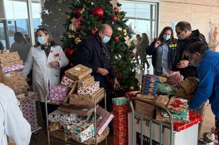 En el hospital Santa Lucía, la entrega de regalos correspondió al vicepresidente de FREMM por Cartagena, Tomás Martínez Pagán.